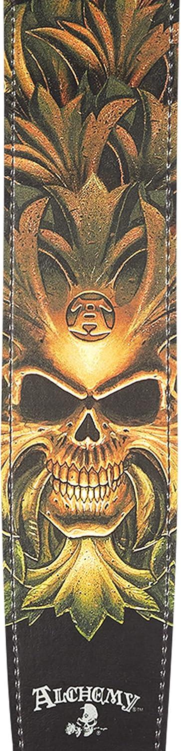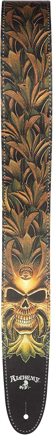 Express your dark side with the Green Skull guitar strap by Alchemy LTD. and D'Addario. Since 1977 Alchemy Gothic has been the leader in gothic jewelry, art and lifestyle products. Designed and produced in their Leicester England workshops, Alchemy Gothic has amassed an incredible collection of authentic gothic, mythology and fantasy art. This astonishing art is now featured on this officially licensed strap collection.
