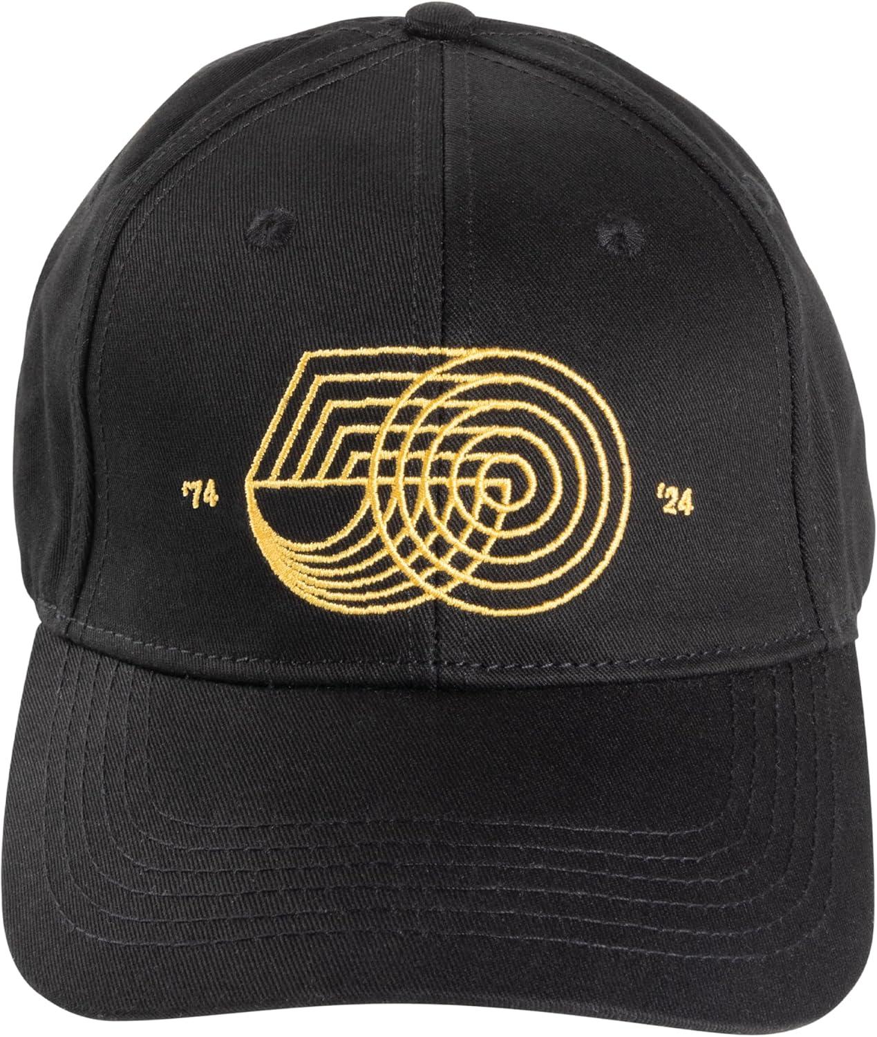Our 50th Anniversary hat features the string-inspired 50-Mark, embroidered with gold on the front, and our original D'Addario Logo tag sewn on the back. The adjustable strap is made of vegan, black leather, with a vintage brass fastener. Limited Edition of 1,000.