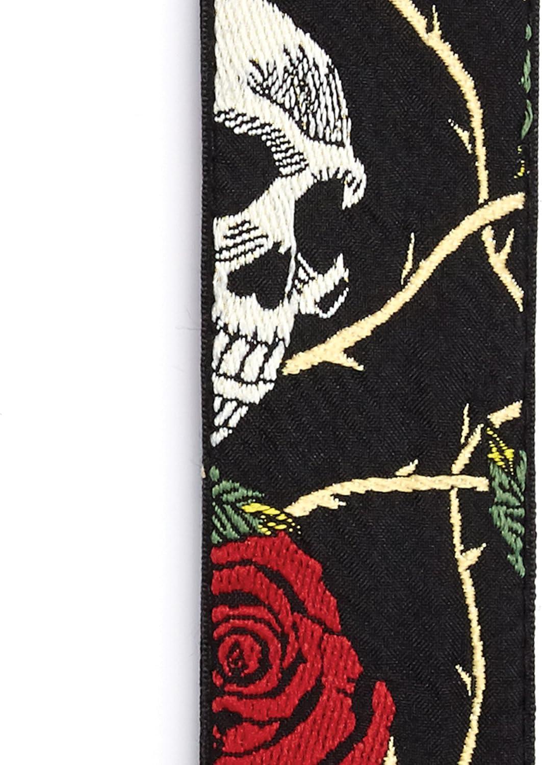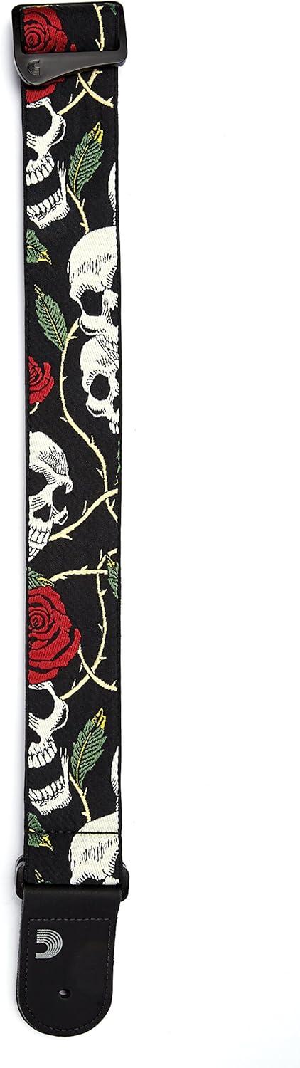 Immortal Love design sewn on comfortable tubular nylon backing Designed for players of all genres, D'Addario woven straps offer designs that will please even the most discerning player. From iconic themes to unique patterns and artwork, these durable straps are sure to accent any guitar and are adjustable from 35″ to 59.5″ long.