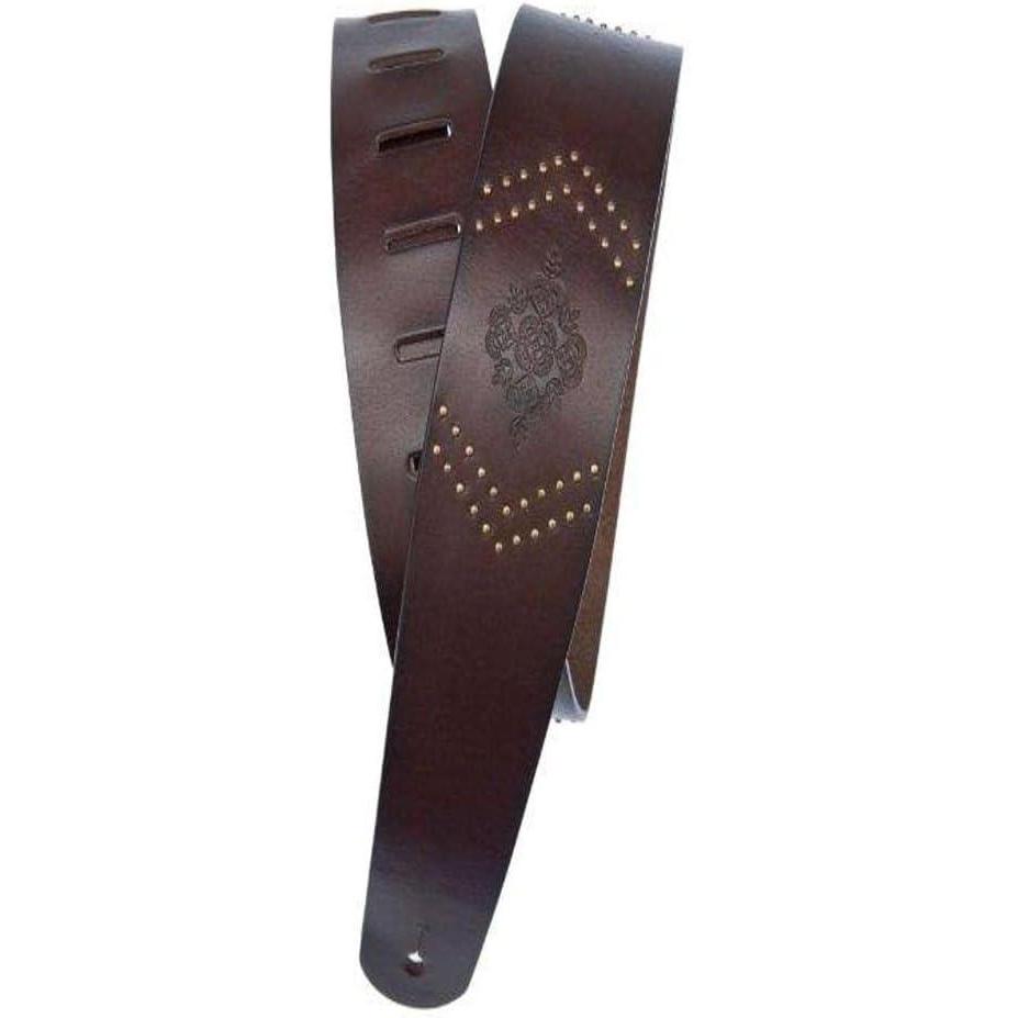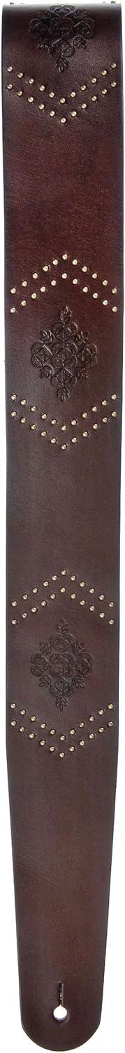 The Planet Waves brown embossed studs leather guitar strap is the perfect accent to any guitar.