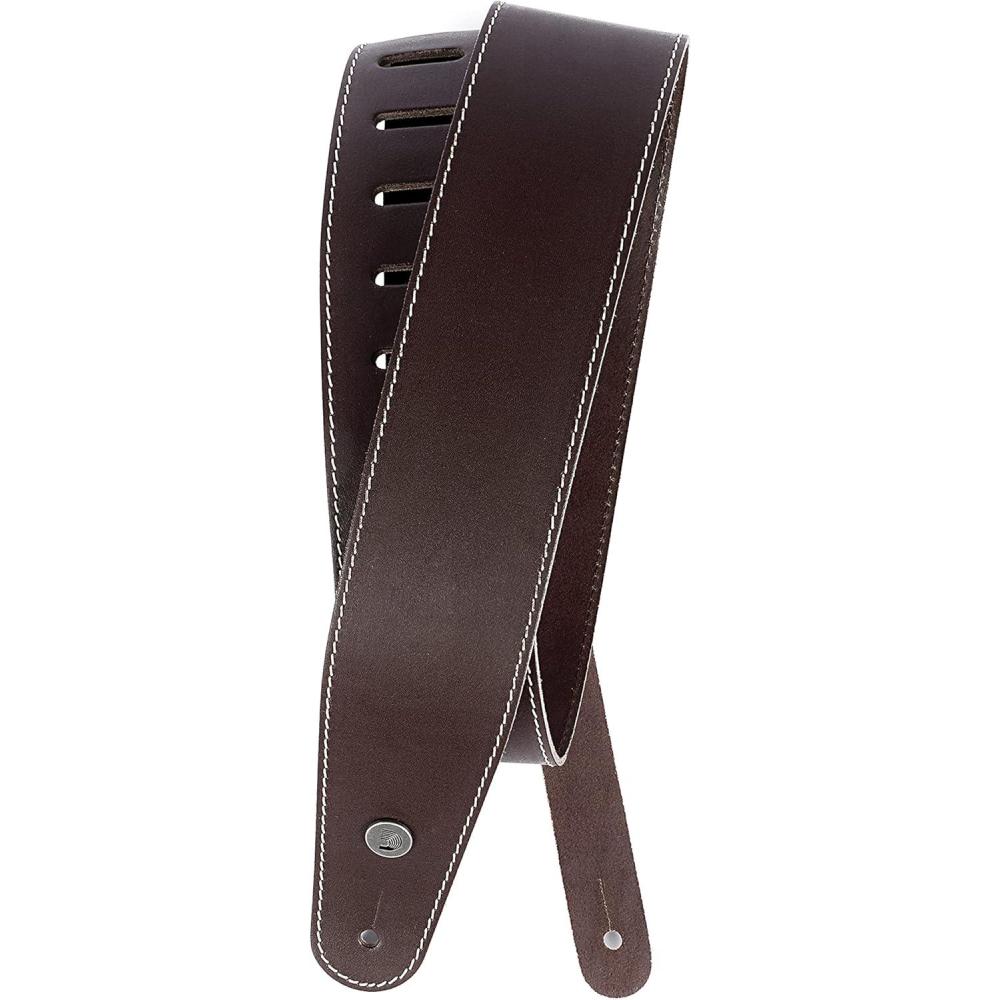 D’Addario Accessories Leather Guitar Strap(Contrast Stich Brown)