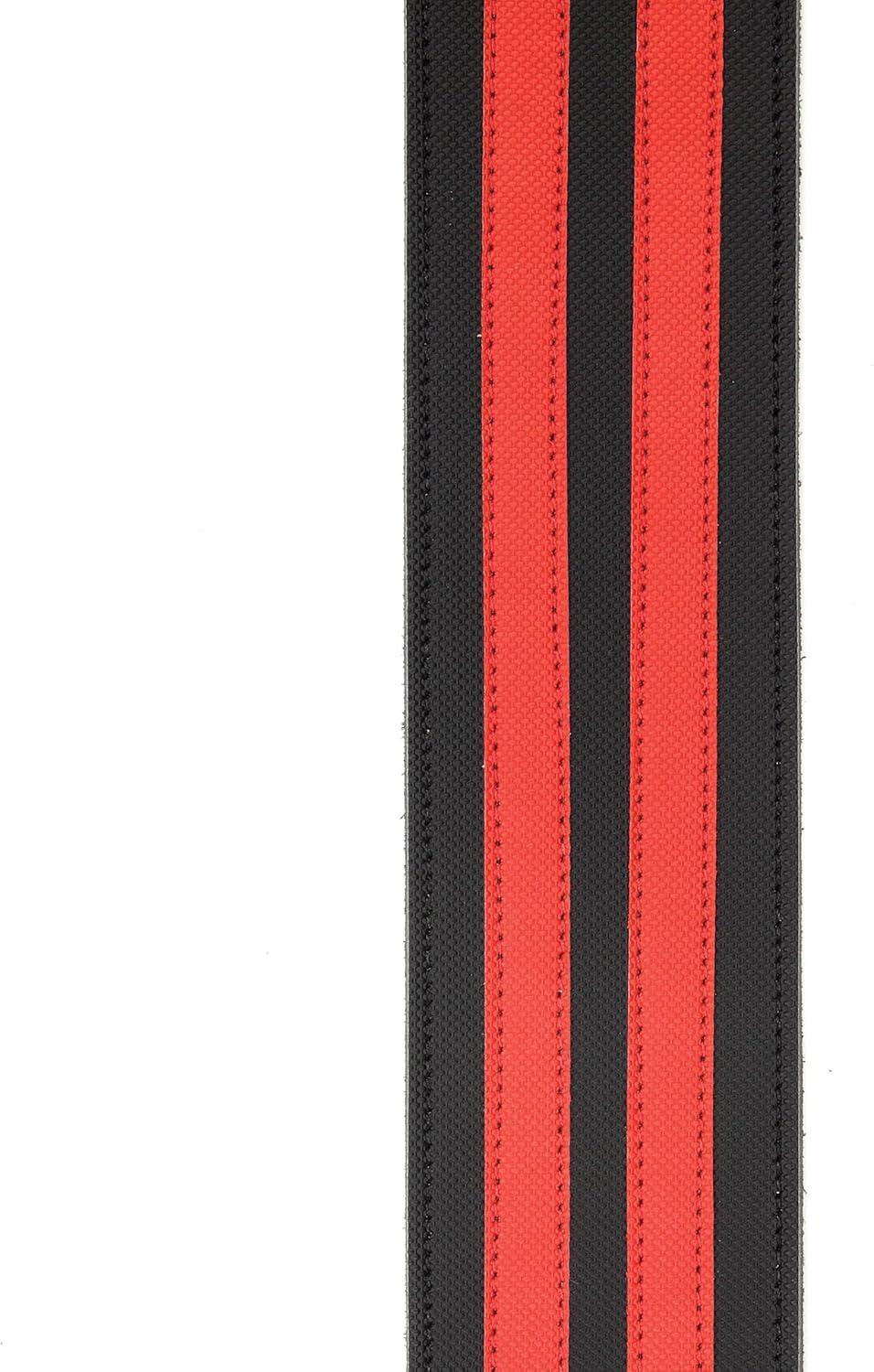 D’Addario Accessories Planet Waves L25W1401 2.5-Inch Leather Guitar Strap, Racing Stripes – Grey with Black Stripes(Red)