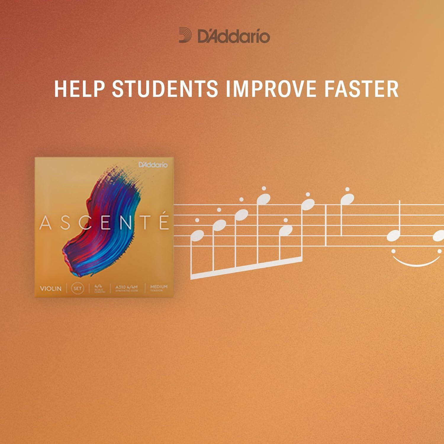 D’Addario Ascente Violin Strings – Violin Strings with Ball Ends, Synthetic Core – A310 4/4M – Full Set – 4/4 Scale – Medium Tension(1/16 Scale)