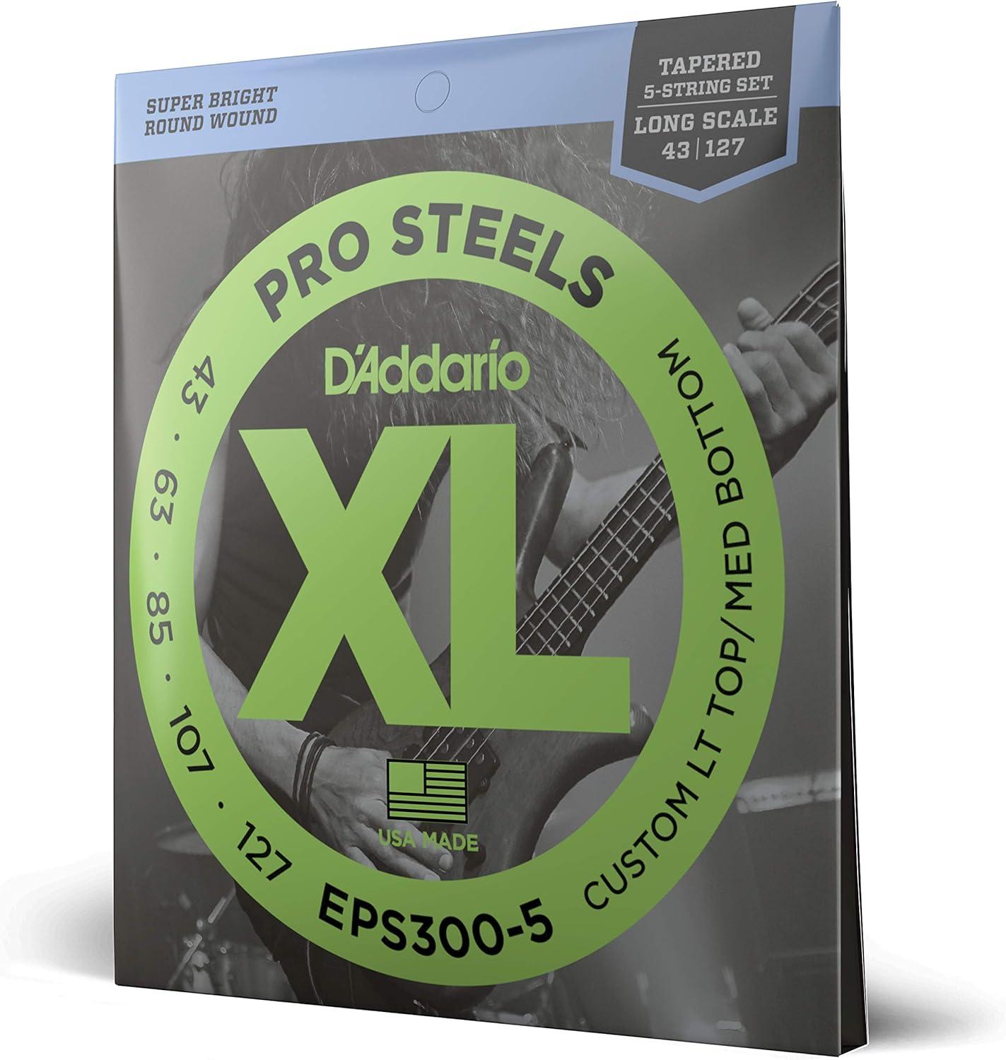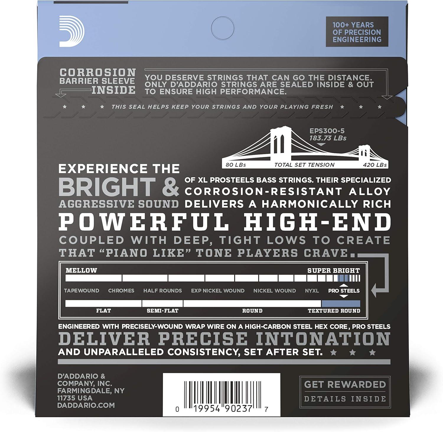 D'Addario Bass Guitar Strings, XL Pro Steels, EPS165, Long Scale, Regular Light Top/Medium Bottom Gauge 45-105, 4-String Set, Pack of 1(Tapered Long Scale)