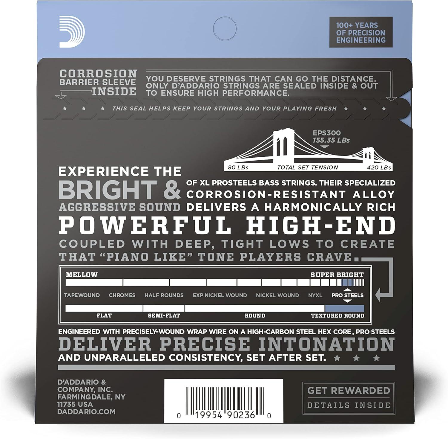 imageDAddario Bass Guitar Strings XL Pro Steels EPS165 Long Scale Regular Light TopMedium Bottom Gauge 45105 4String Set Pack of 1Super Long Scale
