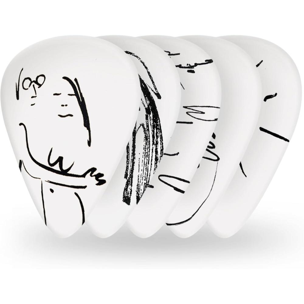 Strum along with a legend using these John Lennon signature picks by D'Addario. Nine picks in the pack feature the Jacquard design from the guitar strap he used at the infamous rooftop performance at Apple Corps in London. One pick has Lennon’s classic cartoon self-portrait on one side and his distinct signature on the other. Commemorate the Beatles’ final public performance and the beginning of John’s iconic solo career with these unique picks.