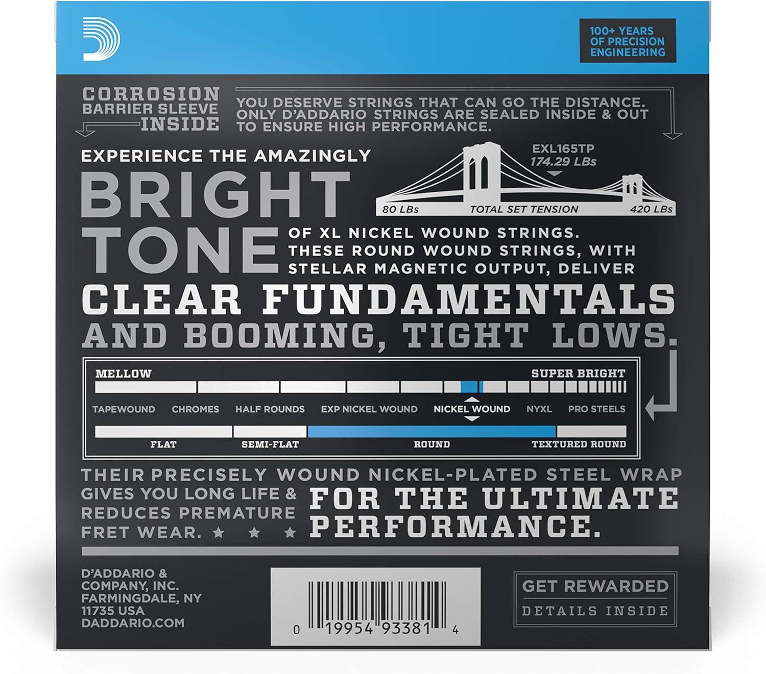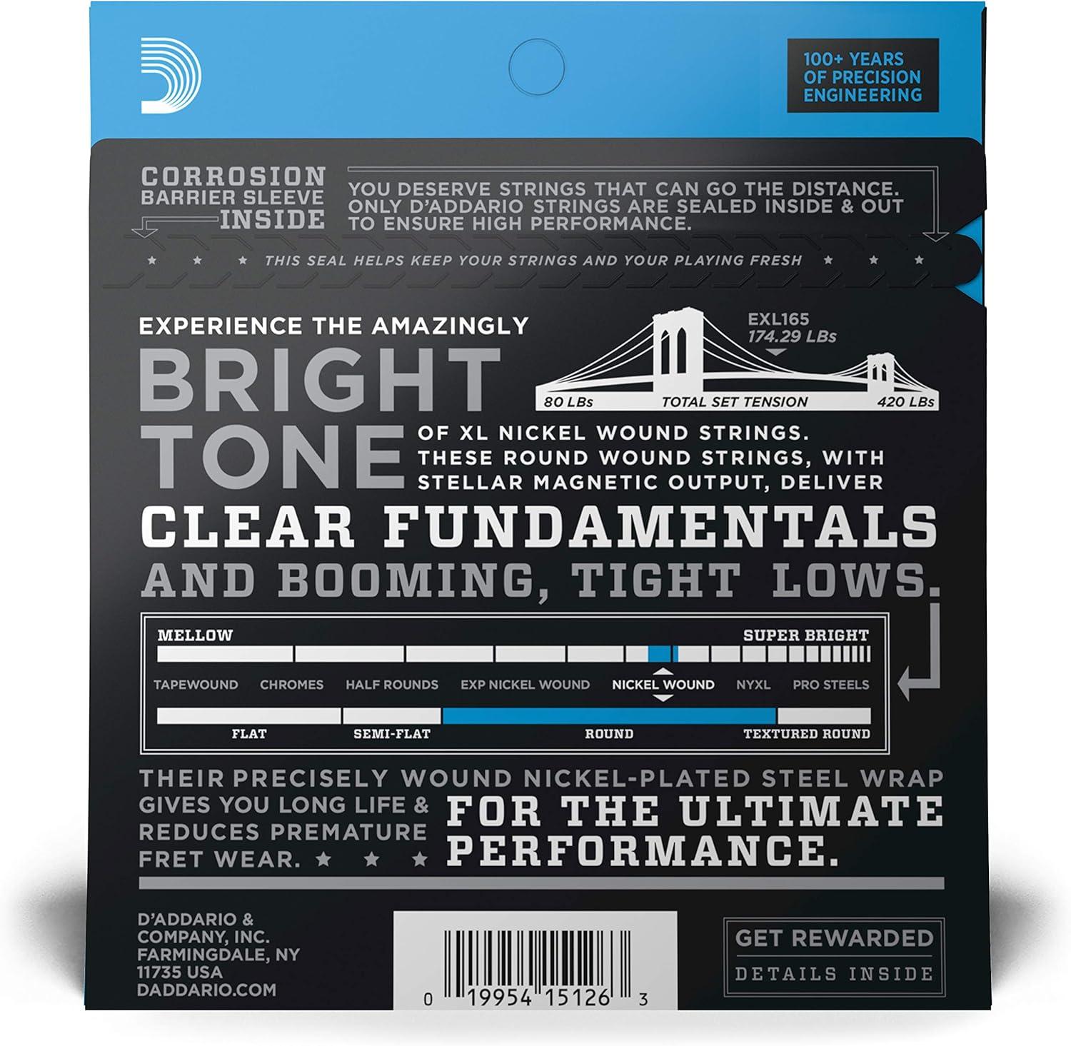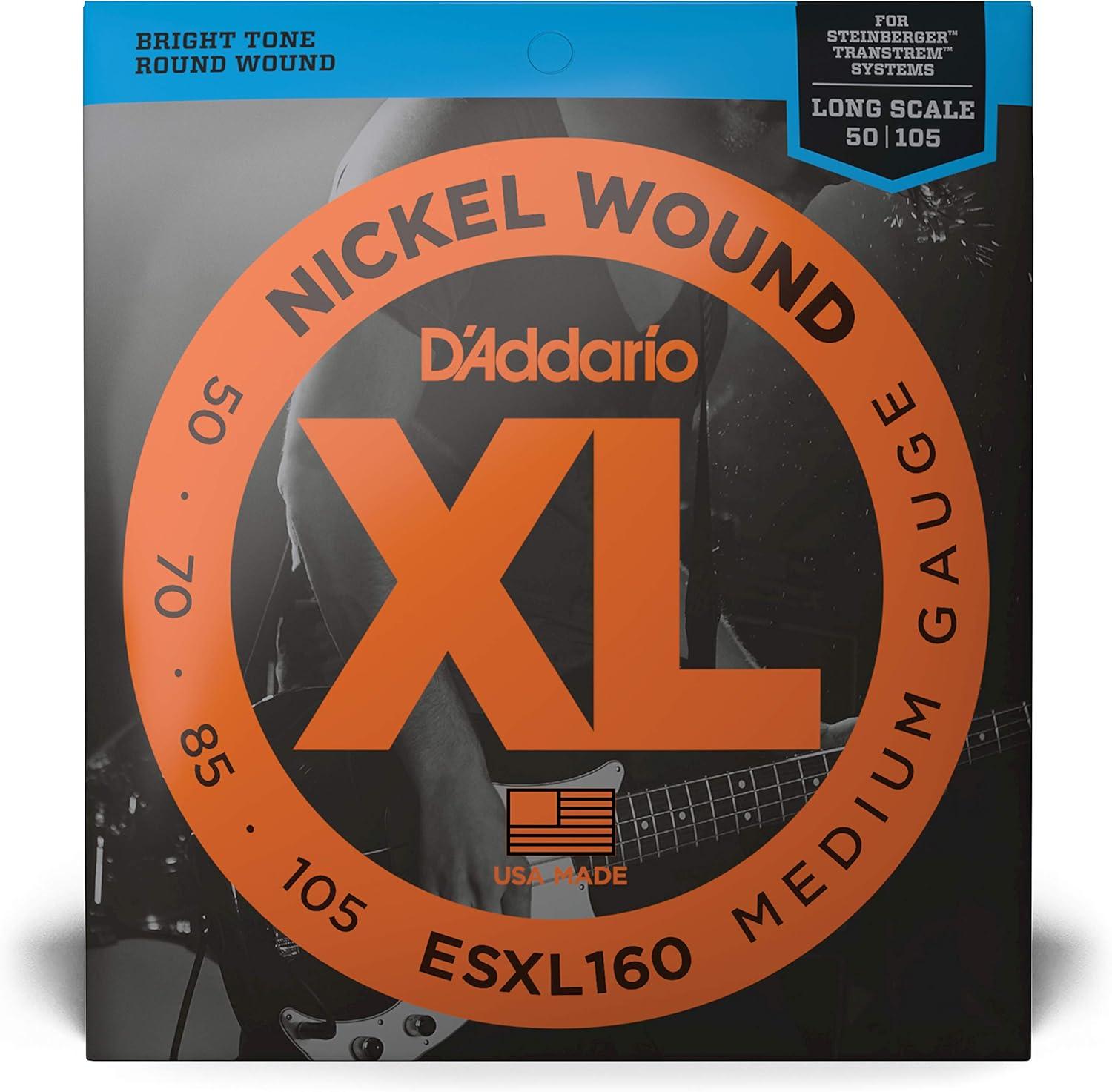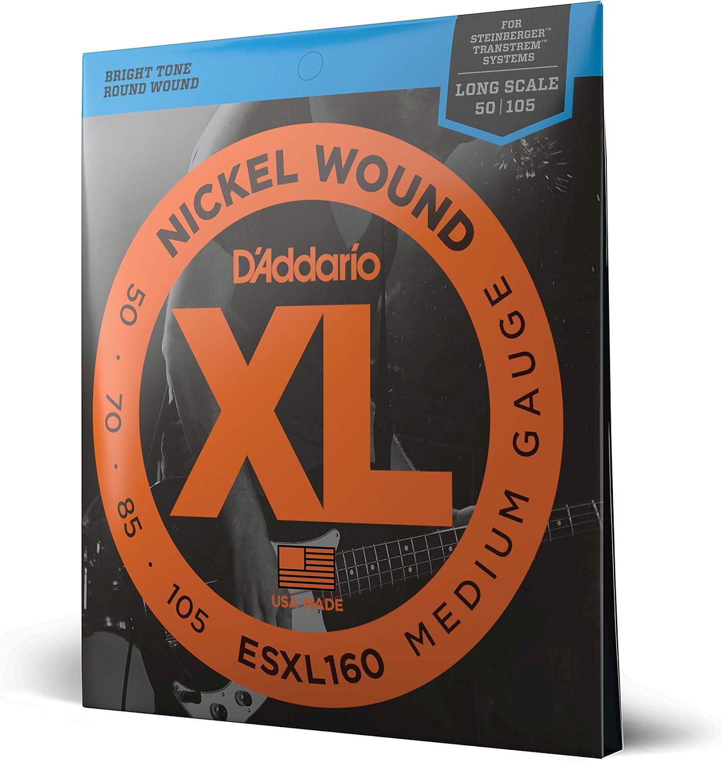 D'Addario Electric Bass Guitar Strings, XL Nickel, EXL160, Medium Gauge 50-105, Long Scale, 4-String Set, Pack of 1(Long Scale)