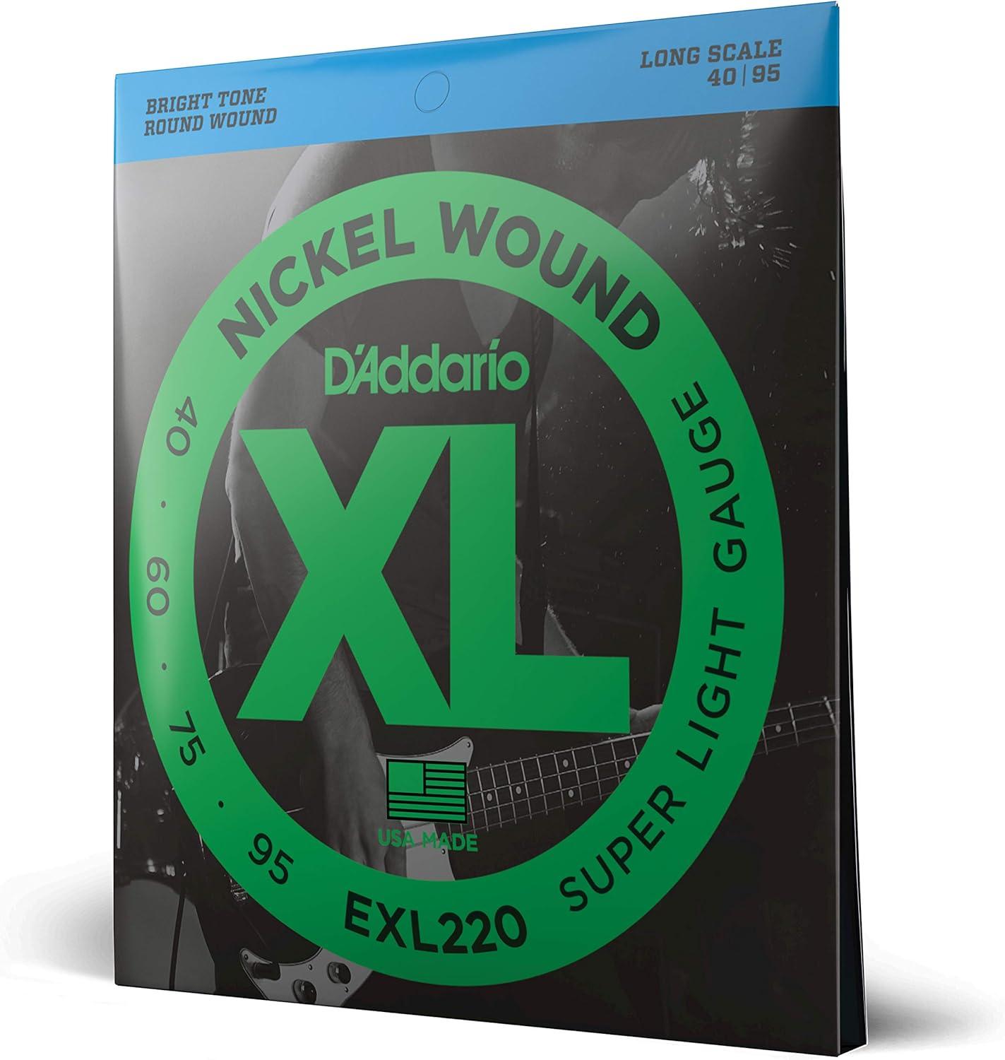 D’Addario Electric Bass Guitar Strings, XL Nickel, EXL160, Medium Gauge 50-105, Long Scale, 4-String Set, Pack of 1(Medium Scale)