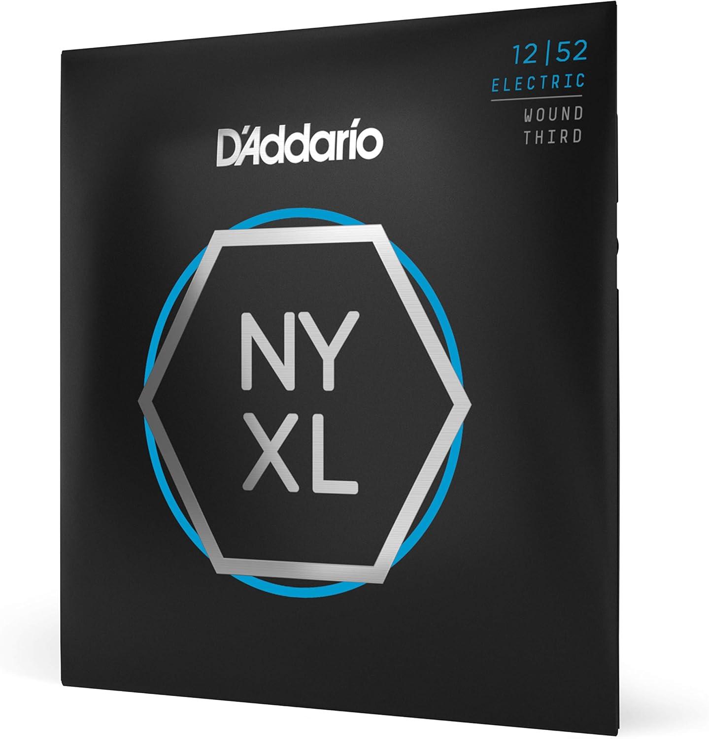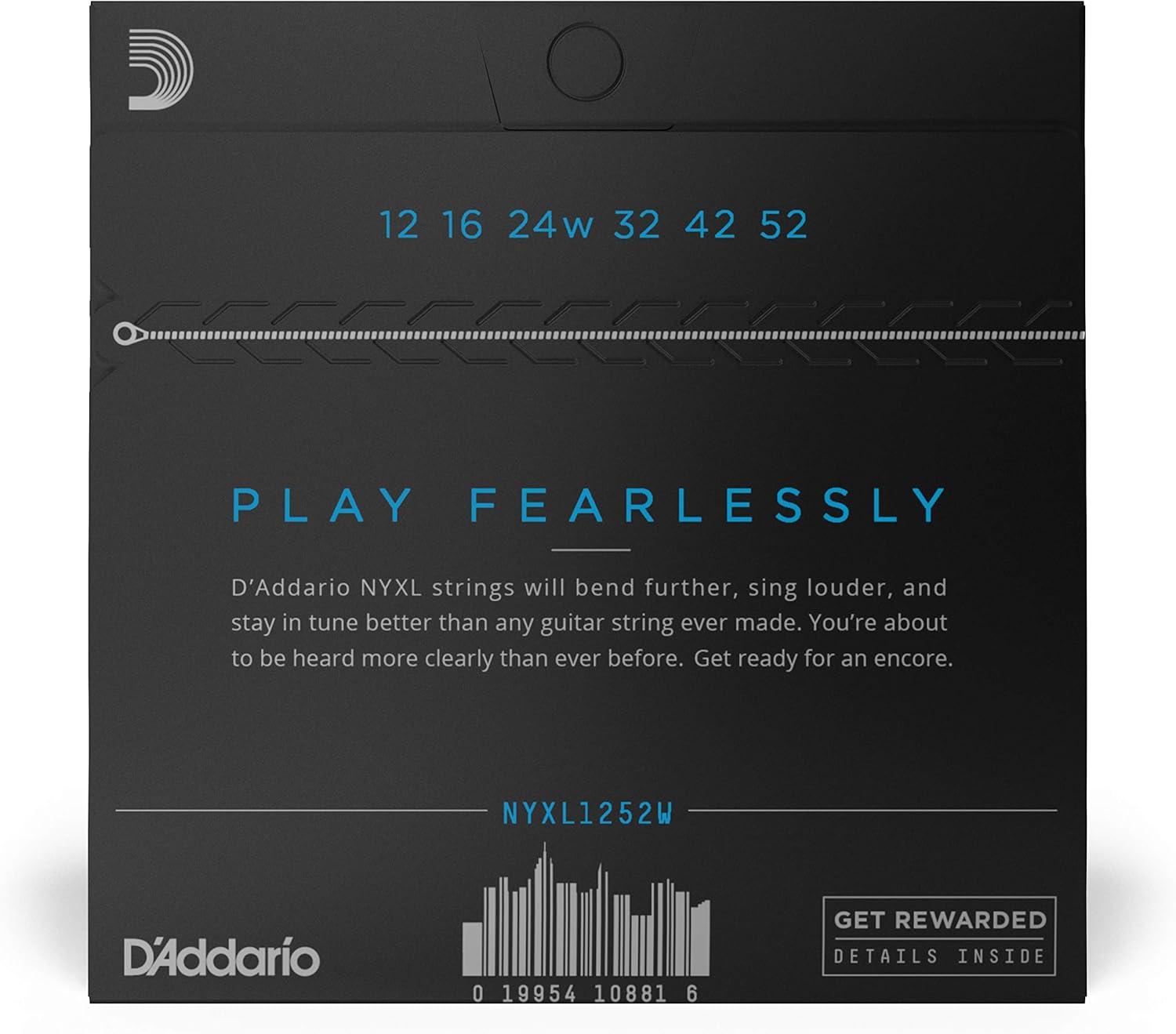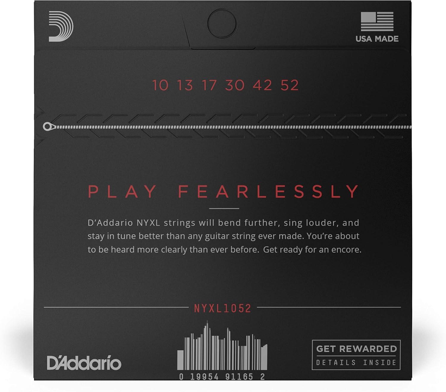 D'Addario Electric Guitar Strings, NYXL Nickel Plated, NYXL1052, Light Top/Heavy Bottom Gauge 10-52, 6-String Set, Pack of 1(1-Pack)