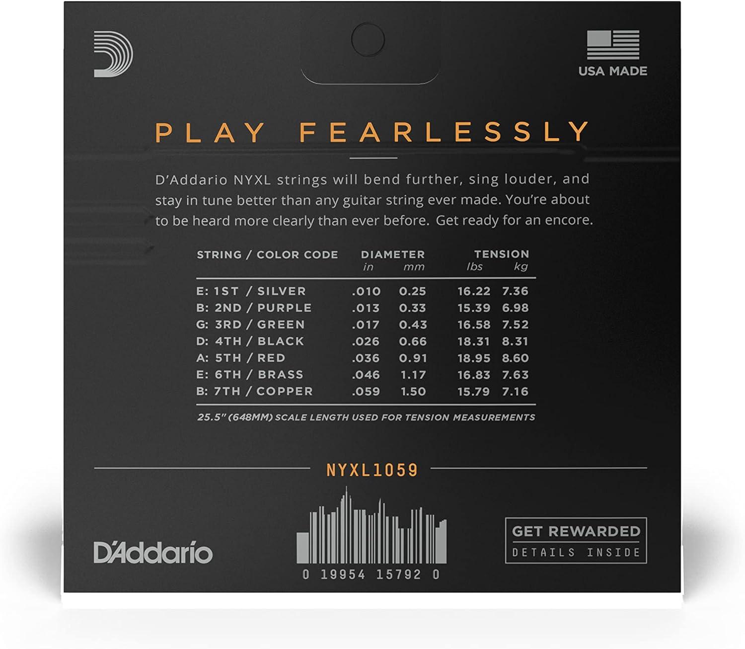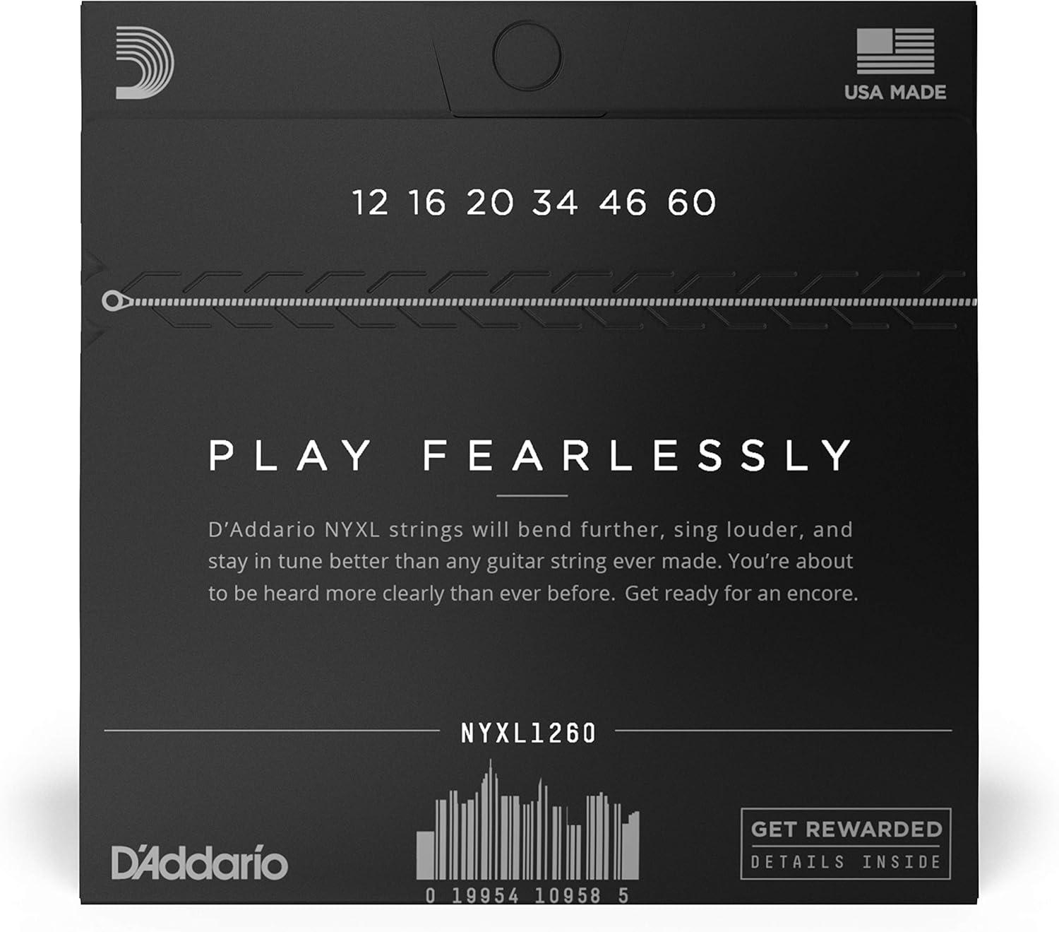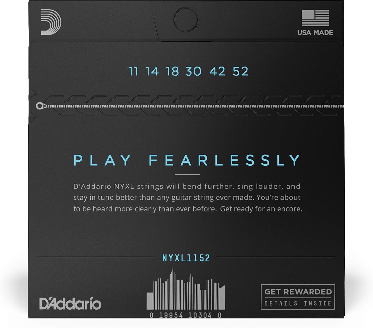 D'Addario Electric Guitar Strings, NYXL Nickel Plated, NYXL1052, Light Top/Heavy Bottom Gauge 10-52, 6-String Set, Pack of 1(1-Pack)