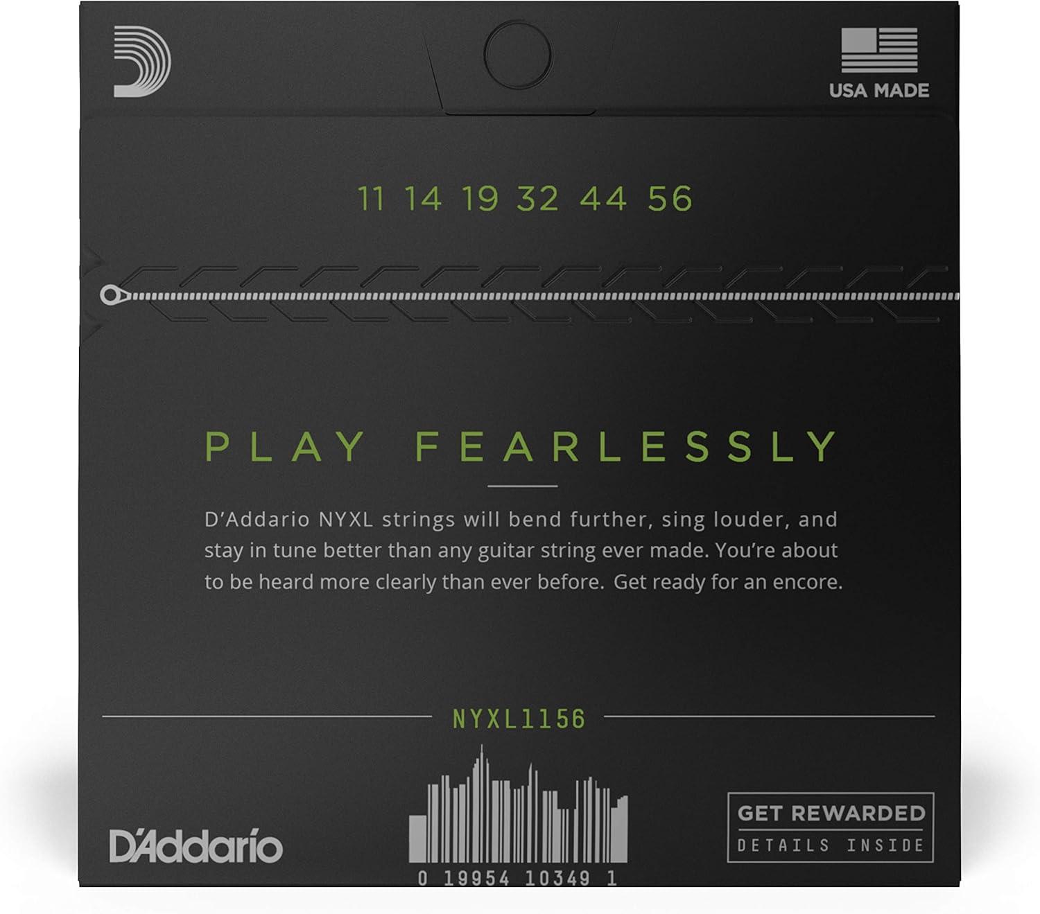 D’Addario NYXL guitar strings will bend further, sing louder, and stay in tune better than any string you’ve played before. Envisioned, perfected, and manufactured by D’Addario in New York, this newly engineered, break-resistant, high-carbon steel core and plain steel alloy delivers a whole new level of freedom, confidence, and power. NYXL’s provide more strength and up to 131% greater tuning stability by utilizing a completely reinvented wire drawing process coupled with a revolutionary “fusion twist” process for the plain steels. The reformulated nickel plated string windings have greater magnetic properties resulting in higher output and enhanced mid-range frequency response for more presence and crunch.
