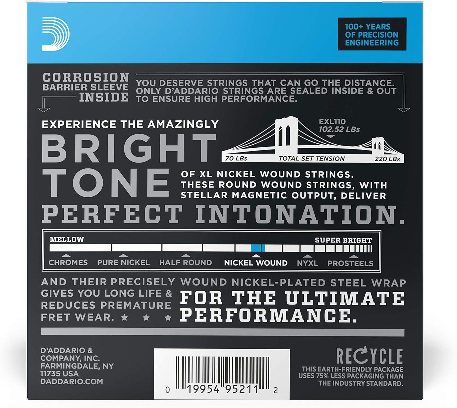FOR THE ULTIMATE PERFORMANCE – Like all D’Addario electric guitar strings, XL Nickel are made with our proprietary Hex-Core, ensuring perfect intonation, consistent feel, and reliable durability.