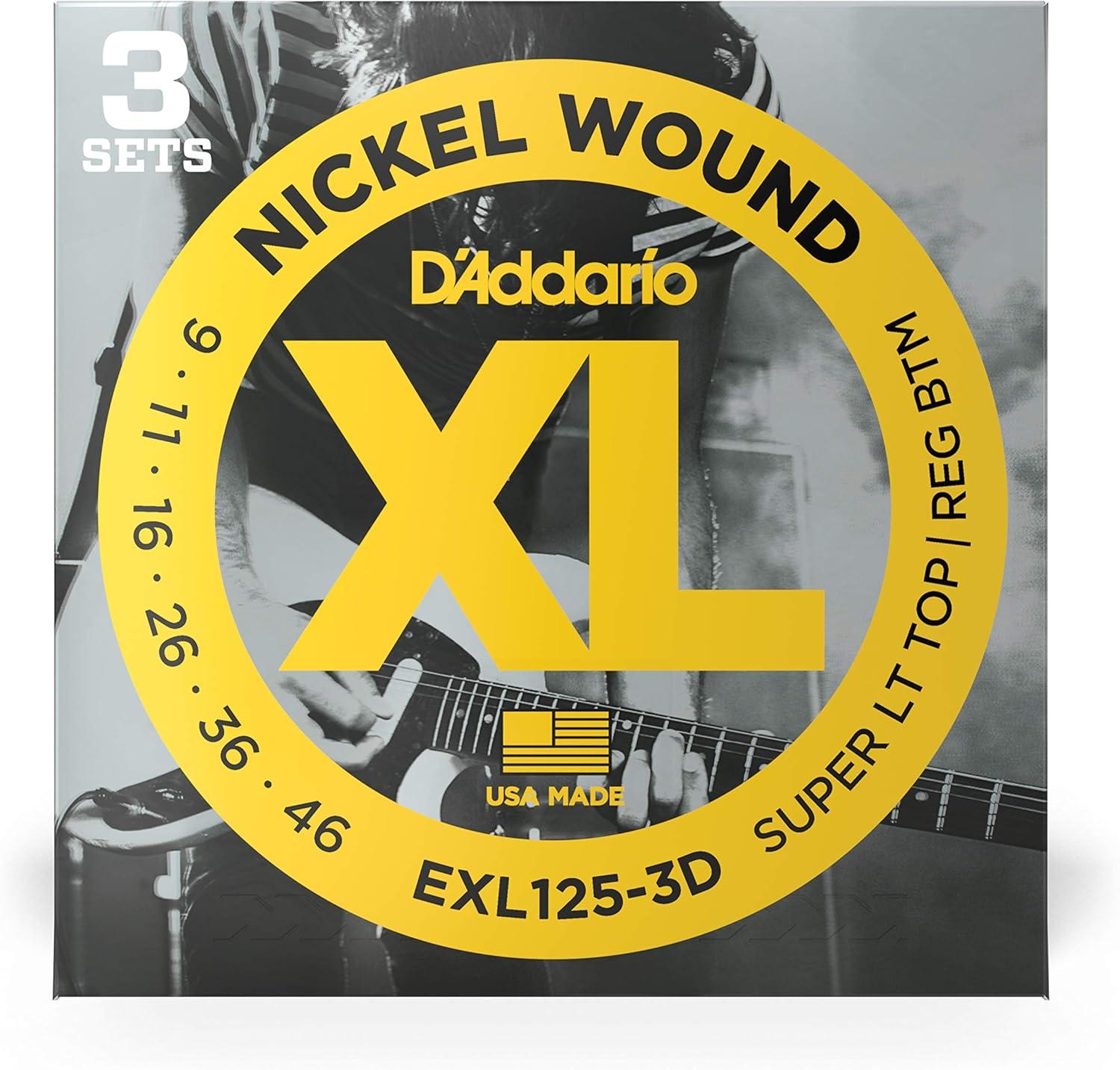 D’Addario Electric Guitar Strings, XL Nickel, EXL116-3D, Medium Top/Heavy Bottom Gauge 11-52, 6-String Set, Pack of 3(Super Light Soldered Twists 09-42)