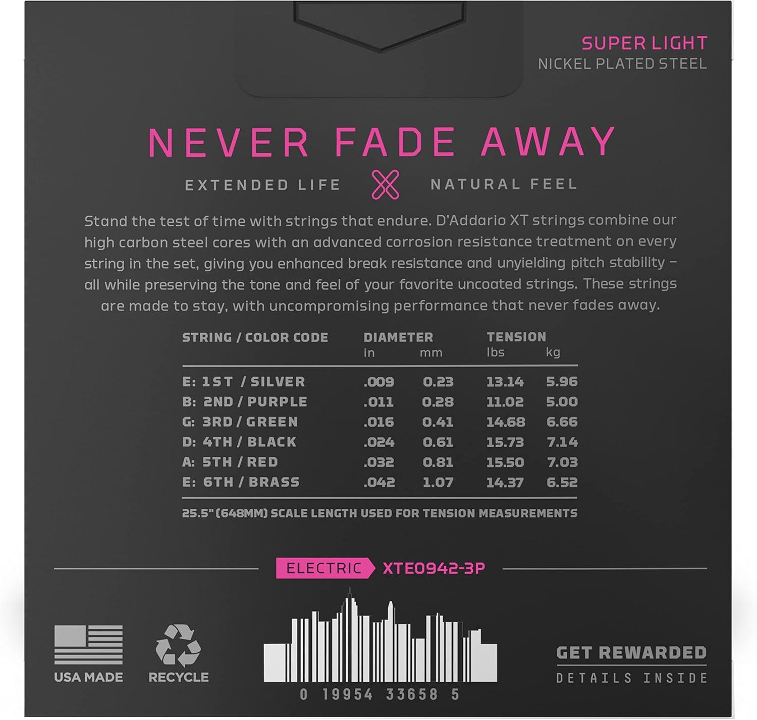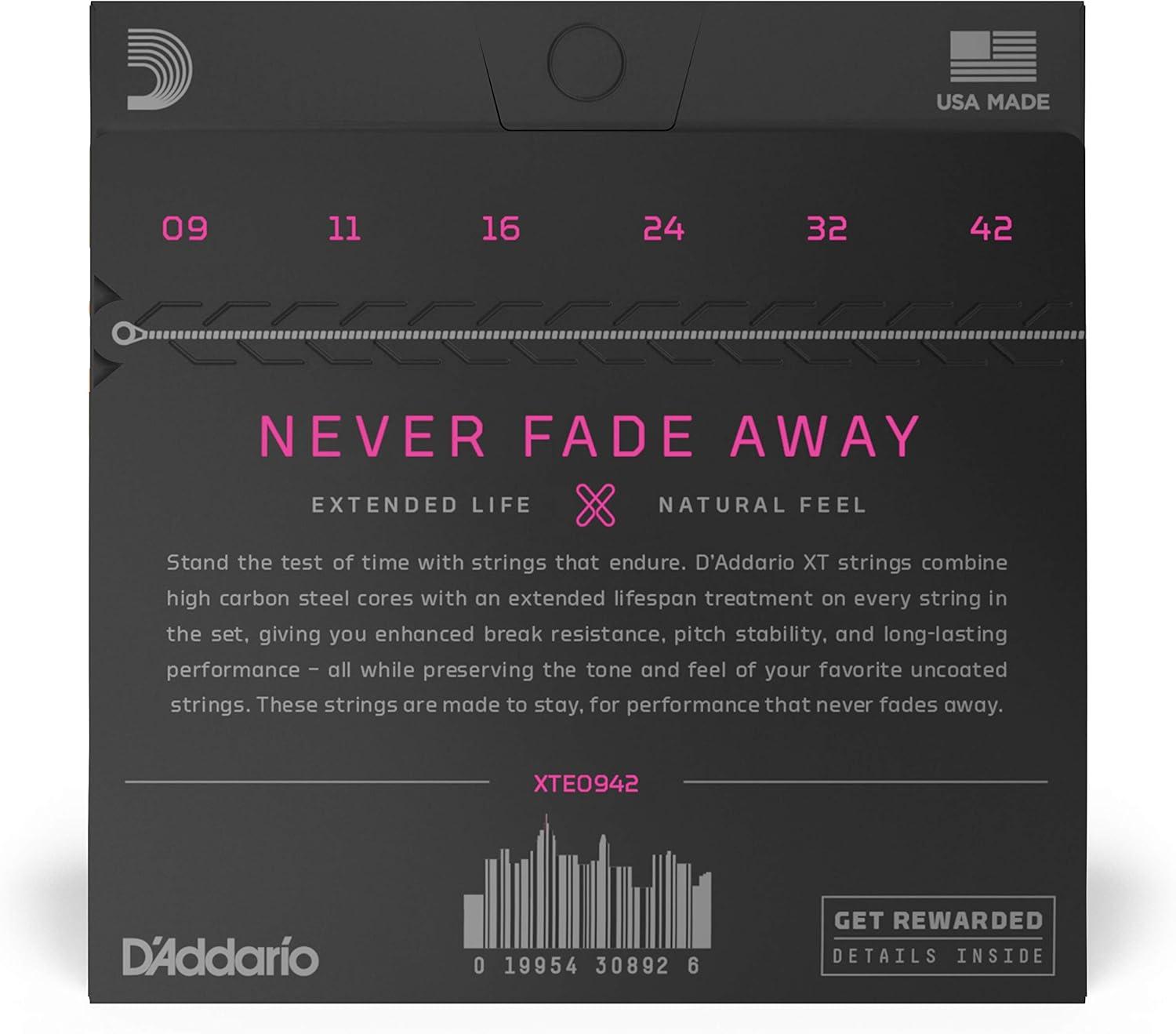 D’Addario Electric Guitar Strings, XT Nickel Coated, XTE1046, Regular Light Gauge 10-46, 6-String Set, Pack of 1(Super Light 09-42)