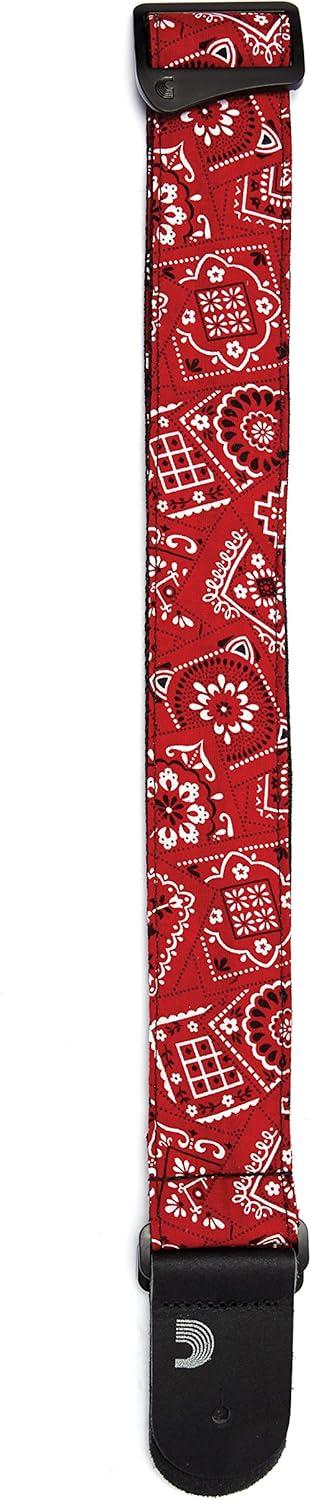 D’Addario Guitar Strap, Camouflage, Leather, Adjustable from 35′ to 59.5′, One Size, 50G04(Bandana Red)
