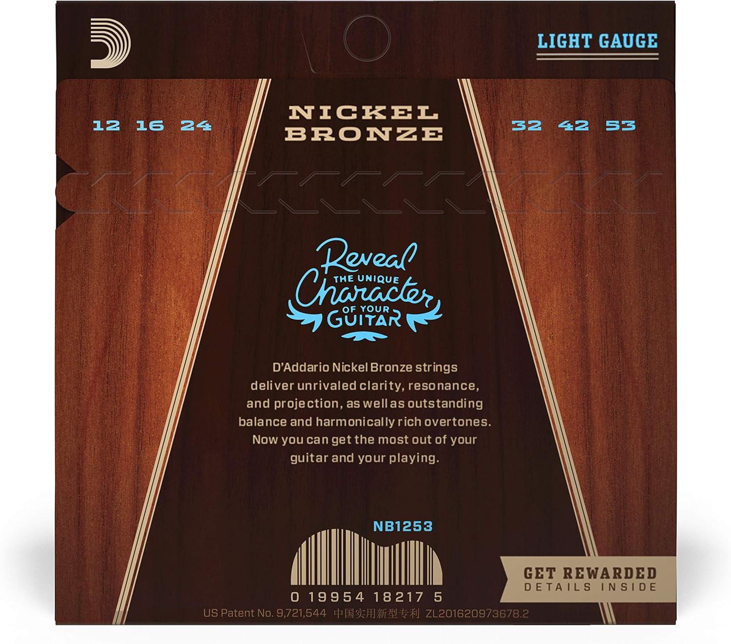 D'Addario Guitar Strings - Acoustic Guitar Strings - Nickel Bronze - For 6 String Guitar - Natural, Clear, & Focused Tone - NB1253 - Light, 12-53(Light 12-53)