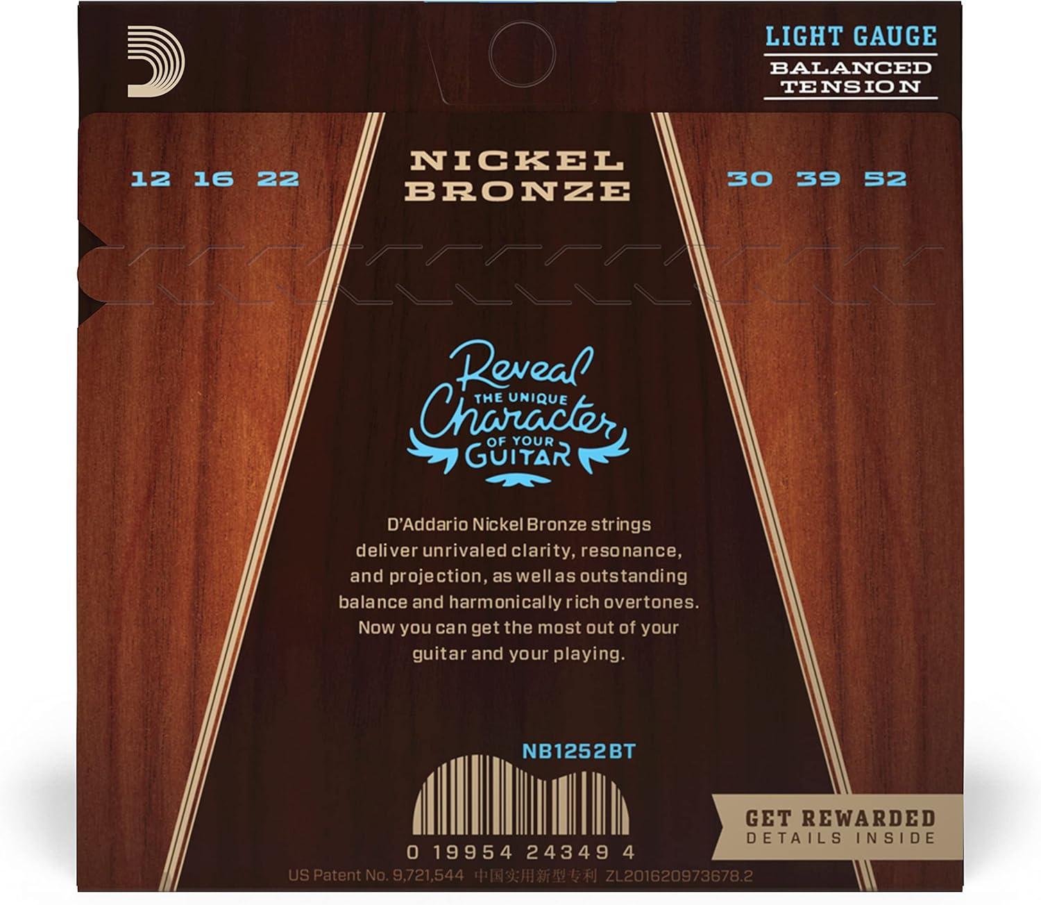 D'Addario Guitar Strings - Acoustic Guitar Strings - Nickel Bronze - For 6 String Guitar - Natural, Clear, & Focused Tone - NB1253 - Light, 12-53(Light (Balanced Tension) 12-52)