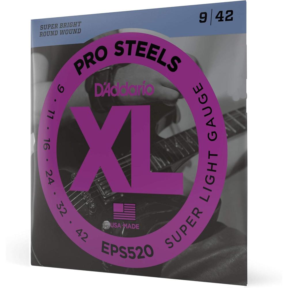 D'Addario XL ProSteels utilize a highly magnetic, corrosion-resistant steel alloy that delivers super-bright tone without shrill overtones. They offer a palette of harmonically rich, brilliantly penetrating highs combined with pronounced, tight-and-tough lows. If you're looking for more crunch, bite, and sustain, ProSteels are the choice for you.