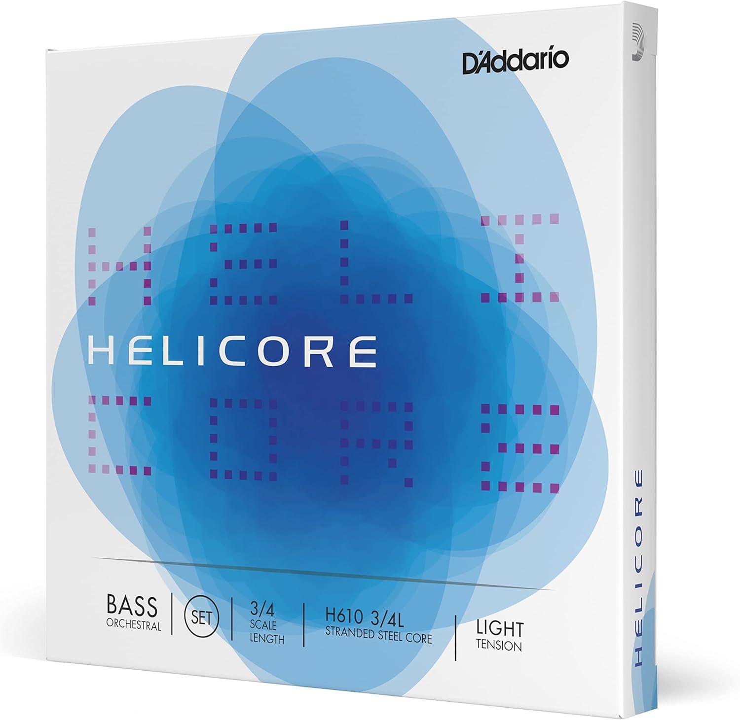 D’Addario Helicore Orchestral Bass String Set, 3/4 Scale, Medium Tension, (Model: H610 3/4M)(Full Set)