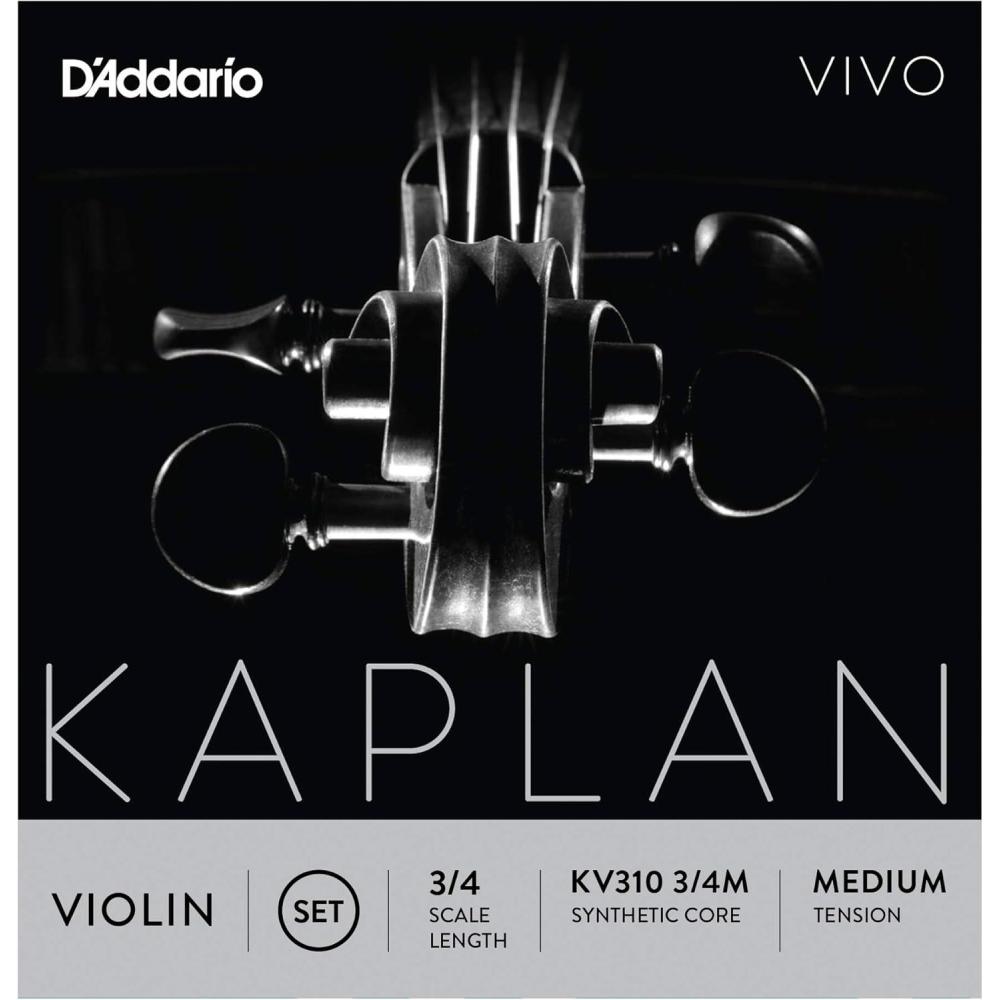 D'Addario Kaplan Vivo Violin Strings - Full Set - KV310 3/4M - Violin Strings - 3/4 Scale, Medium Tension(Full Set)