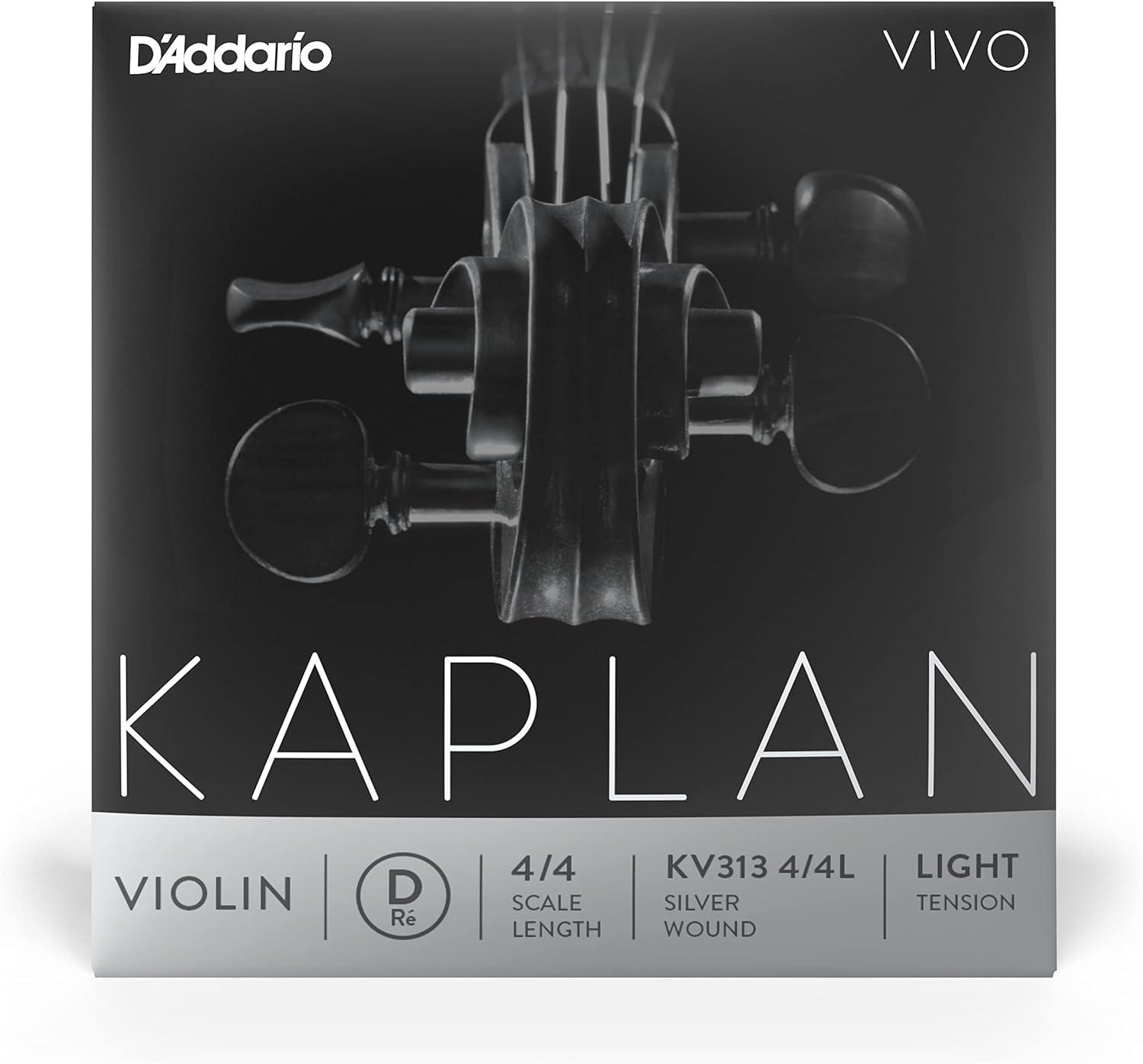 D'Addario Kaplan Vivo Violin Strings - Full Set - KV310 4/4M - Violin Strings - 4/4 Scale, Medium Tension(Light Tension)