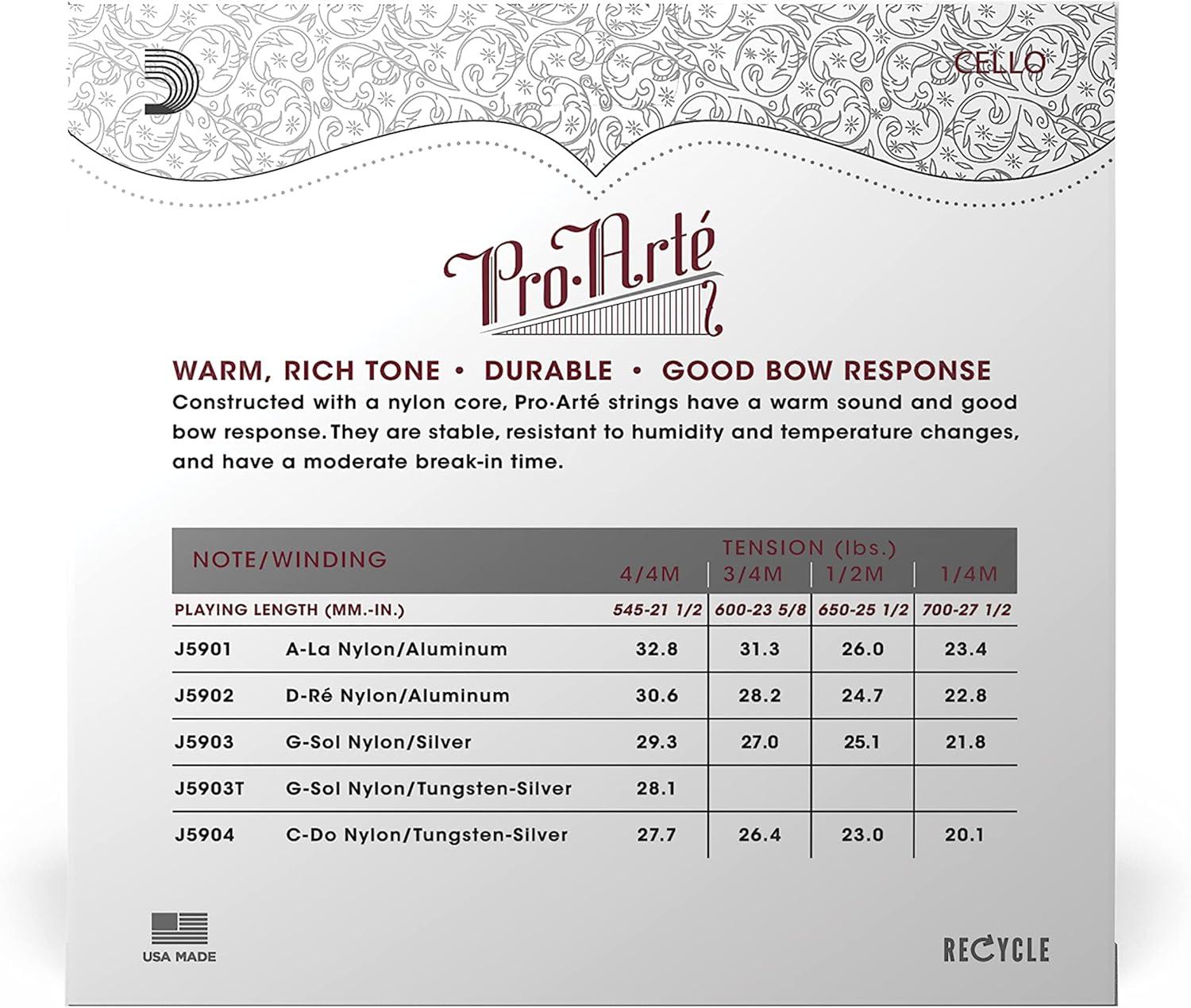 D’Addario Pro-Arte Cello Single G String, 4/4 Scale, Medium Tension(Full Set)