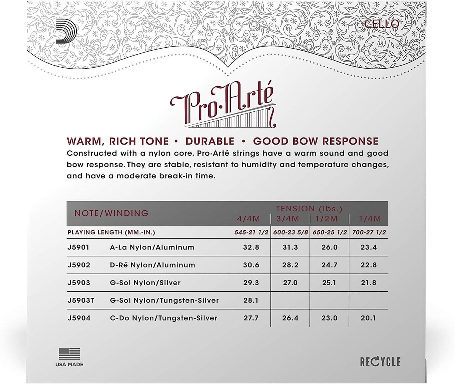D'Addario Pro-Arte Cello Single G String, 4/4 Scale, Medium Tension(Full Set)
