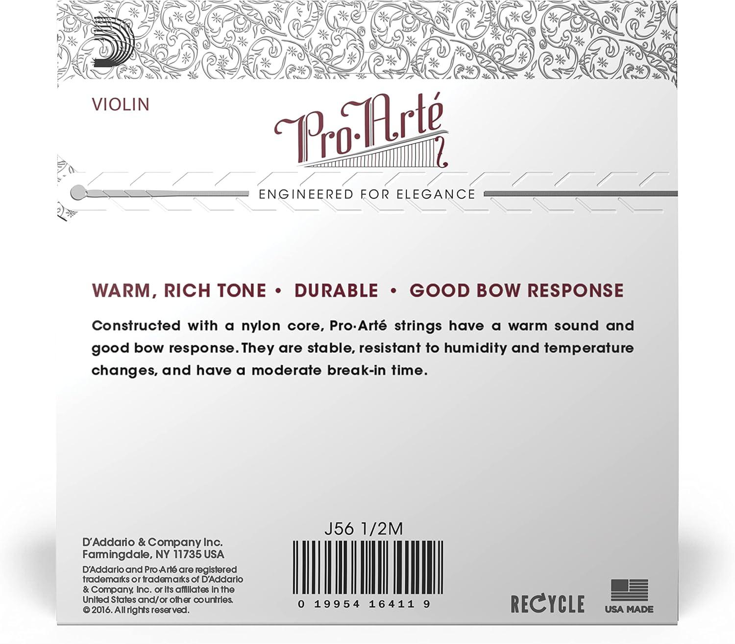 Pro-Arte synthetic core violin strings have a warm, mellow tone. They are less sensitive to humidity and temperature changes, and break in quickly. Pro-Arte strings are designed at a lower tension in order to maximize bow response, tonal blend and playability. A good choice if a warmer, darker tone than steel strings is desired. The 3/4 scale strings are gauged specifically for 3/4 size violin with a playing length of 12 1/4 inches (310mm).