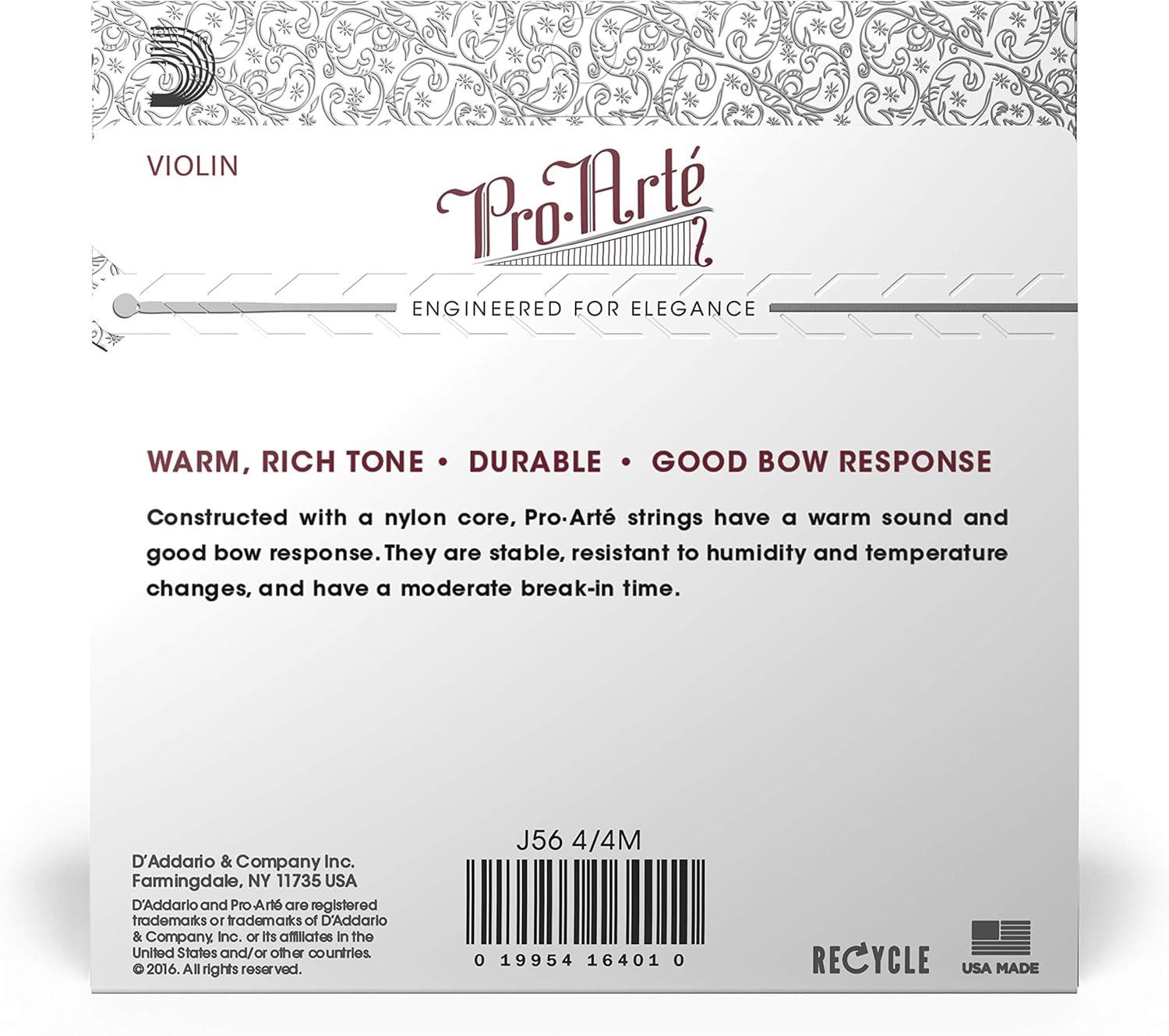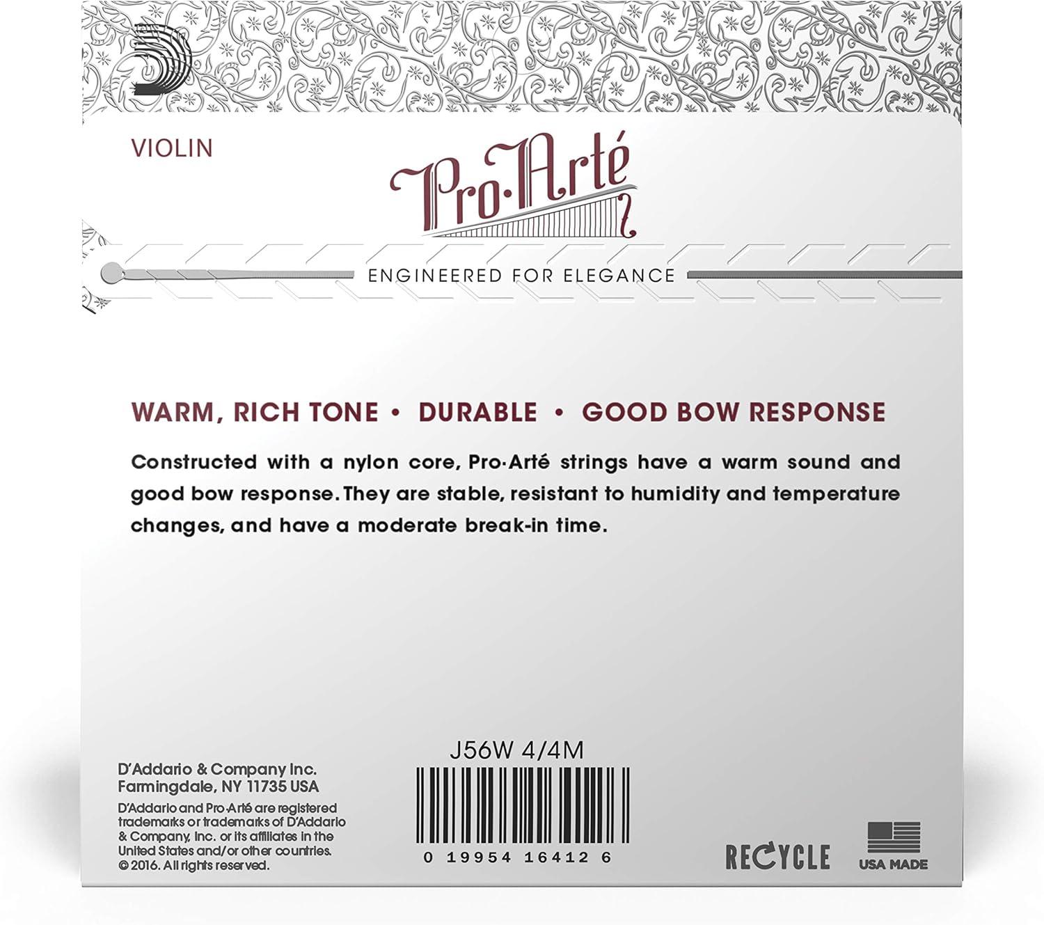 Pro-Arte synthetic core violin strings have a warm, mellow tone. They are less sensitive to humidity and temperature changes, and break in quickly. Pro-Arte strings are designed at a lower tension in order to maximize bow response, tonal blend and playability. A good choice if a warmer, darker tone than steel strings is desired. The 3/4 scale strings are gauged specifically for 3/4 size violin with a playing length of 12 1/4 inches (310mm).