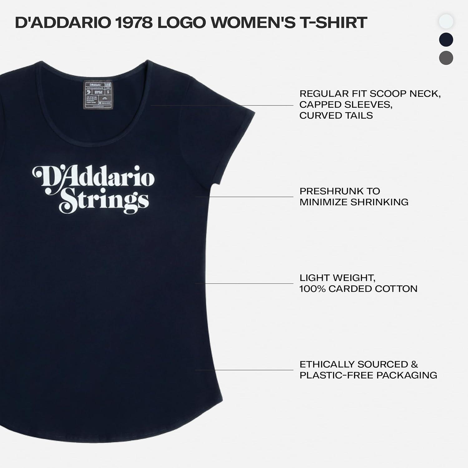 The ’78 logo was introduced exclusively for the 1978 NAMM Show. Nearly half a century later, this classic logo is memorialized on a lightweight, regular fit women’s t-shirt. Available in navy blue or coal grey, these tee's feature a scoop neck, capped sleeves, and curved tails. It’s made with 100% combed cotton, ethically sourced, and packaged without plastic.