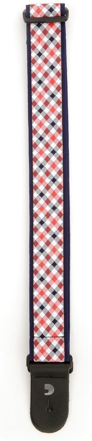 D’Addario Woven Guitar Strap, Gingham – Red/Navy(Grey)
