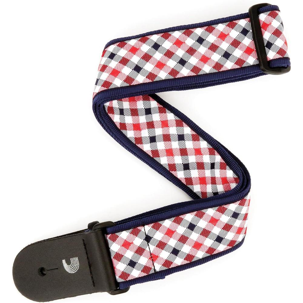 The Gingham design has been a staple in American fashion for decades. This design, with red and navy accents, is sure to stand out on stage for a number of genres Designed for players of all genres, D'Addario woven straps offer designs that will please even the most discerning player. From iconic themes to unique patterns and artwork, these durable straps are sure to accent any guitar and are adjustable from 35″ to 59.5″ long.