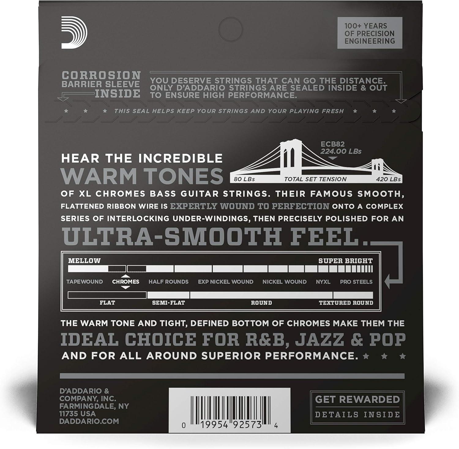 D’Addario XL Chromes Flat Wound Bass Guitar Strings – ECB81 – Long Scale – Regular Light, 45-100(Long Scale)